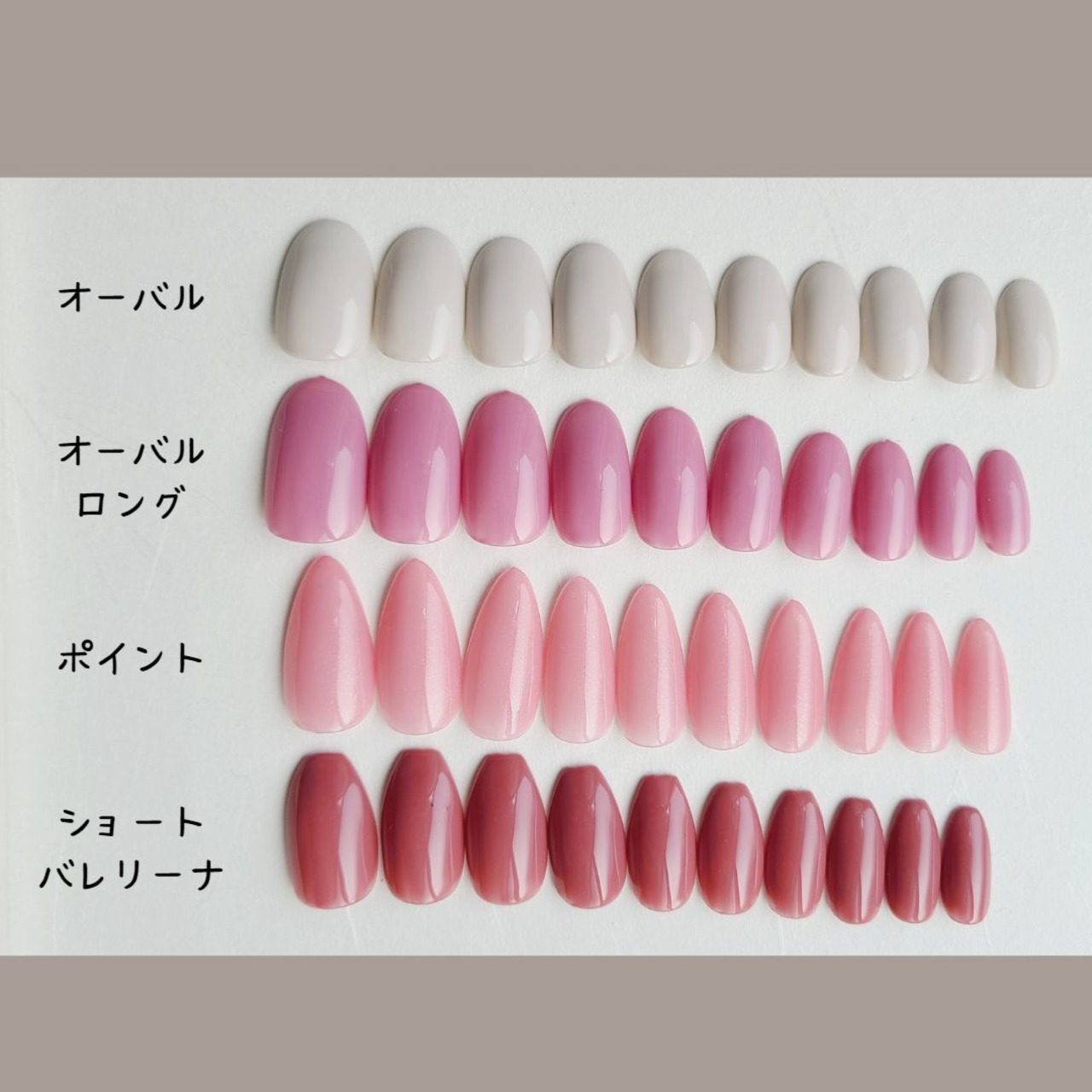 チップの形は、オーバル、オーバルロング、ポイント、ショートバレリーナです。