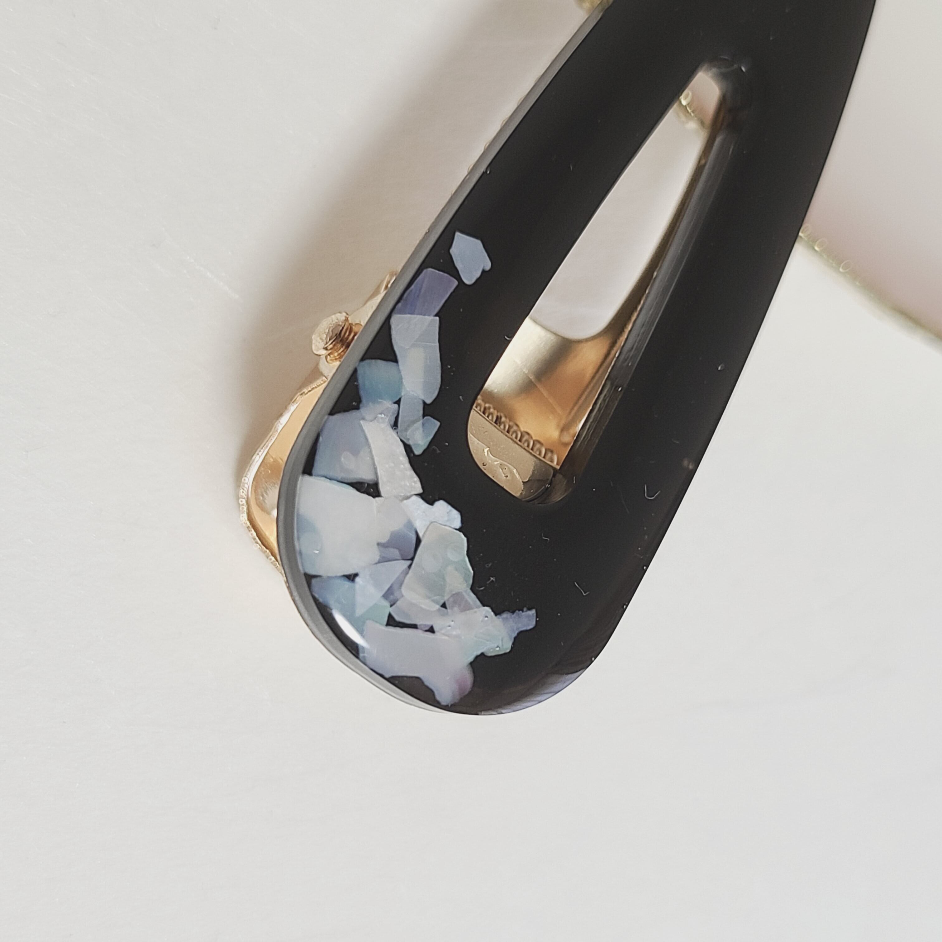 ホワイトシェルを散りばめ、華やかにもシックにも見えるデザインです。